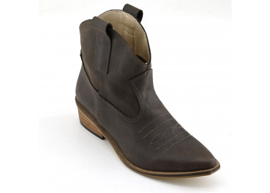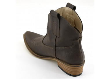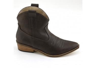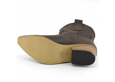 Texana de cuero con recortes. Caña media con cierre lateral. Suela sintética con taco folia.