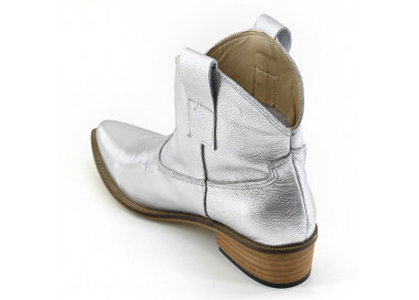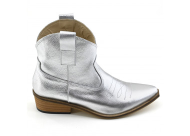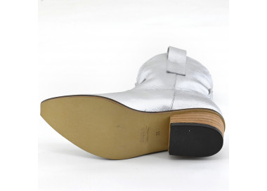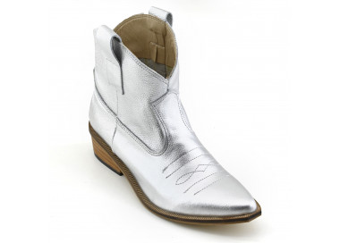 Texana de cuero con recortes. Caña media con cierre lateral. Suela sintética con taco folia.