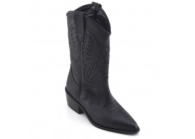 Bota texana en cuero sintético, con diseño bordado.