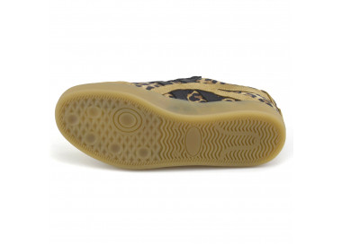 Fabricada en cuero vacuno y tela antidesgarro. Acordonada con ojalillos alpinos. Plantilla de latex y robusta suela plataforma de goma. Altura: 4 cm en plataforma y 5 cm en área de talón.