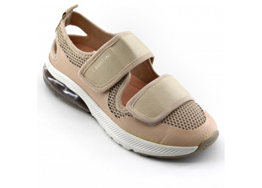 La Zapatilla Hush Puppies On color blanco confeccionada en cuero y descarne, con tres velcros que facilitan el ajuste y detalles de pequeñas perforaciones en el perfil que aportan frescura y estilo. La identificación de la marca se encuentra en la lengua y el talón. Incorpora una plantilla de material sintético con logo y una suela de goma antideslizante con una altura total de 4,2 cm que...