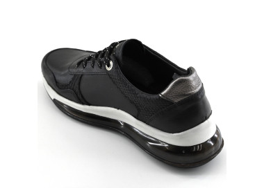 Zapatilla de stilo urbano, confeccionada en textil y material sintético (PU) tipo suede, con múltiples recortes y detalles de print reflectivos que mejoran la visibilidad.