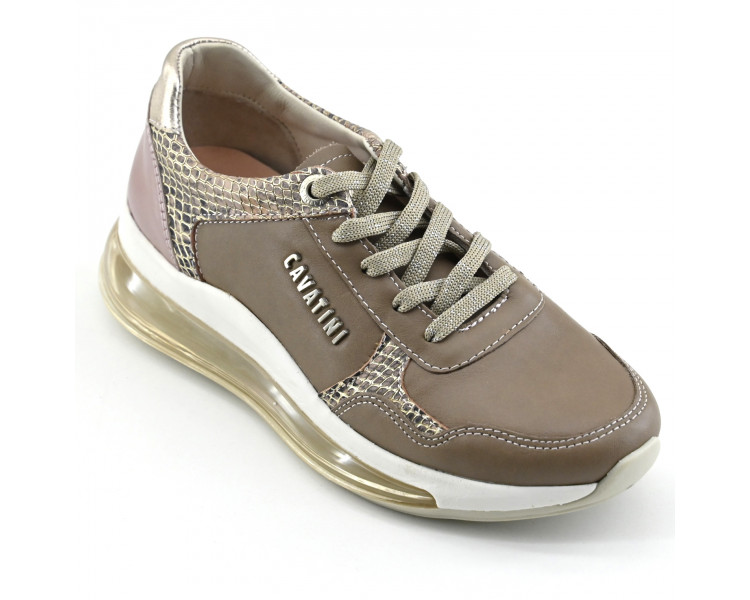 FABRICADA EN CUERO VACUNO Y GAMUZA, CON DETALLES EN RELIEVE Y SUELA DE CAUCHO, COSIDA CON COSTURAS A LA VISTA.