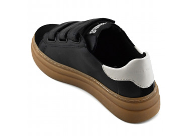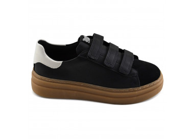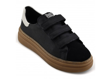 La Zapatilla Hush Puppies On confeccionada en cuero y descarne, con tres velcros que facilitan el ajuste y detalles de pequeñas perforaciones en el perfil que aportan frescura y estilo. La identificación de la marca se encuentra en la lengua y el talón. Incorpora una plantilla de material sintético con logo y una suela de goma antideslizante con una altura total de 4,2 cm que brinda estabilidad y comodidad en cada paso.
