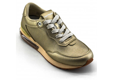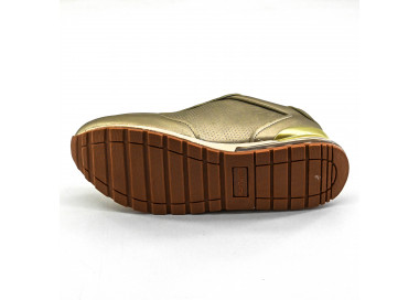 Zapatilla urbana de mujer en cuero y gamuza combinados. Acceso con cordones a tono. Base plataforma de goma.