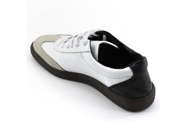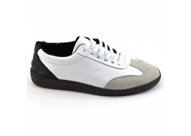 Sneakers acordonada confeccionada en cuero natural de diferentes texturas.