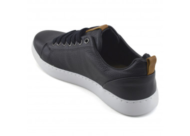 Zapatilla urbana de cuero para hombre. Capellada combinada en cuero liso y microperforado. Acceso con sistema de cordón elastizado. Suela plataforma combinada en material sintético.