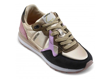 Sneakers acordonada confeccionada en cuero natural de diferentes texturas.