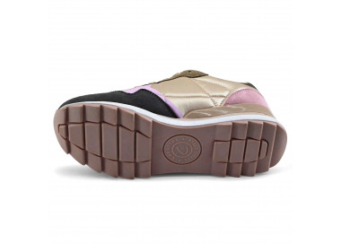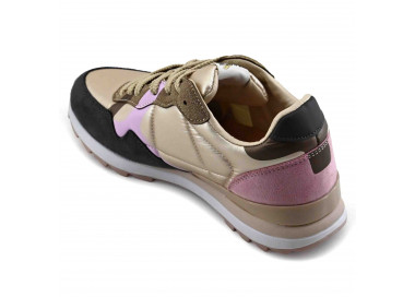 Zapatilla Gipsy, de mujer, confeccionada en textil con detalles metalizados y base liviana con tecnología Lightway EVA. Un diseño moderno con cordonera y talonera en gamuza, que mezcla comodidad, color y personalidad.