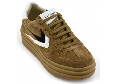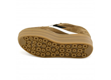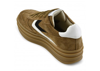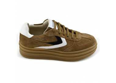 Zapatilla urbana de mujer en cuero y gamuza combinados.