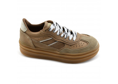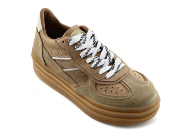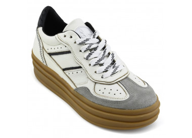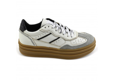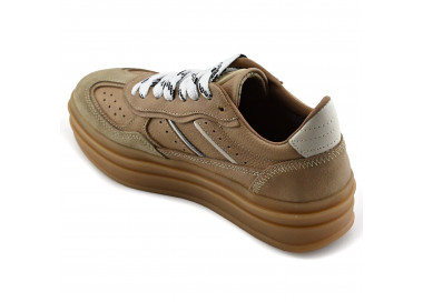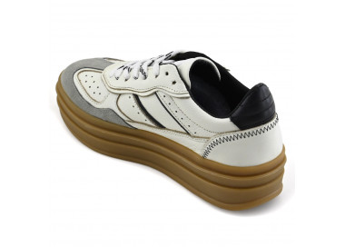 Zapatilla urbana de cuero combinado. Suela plataforma liviana.