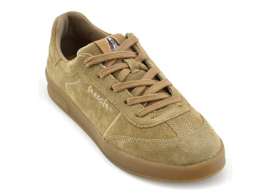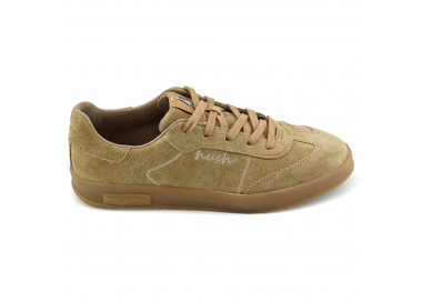 Zapatilla Hush Puppies acordonada en cuero descarne.