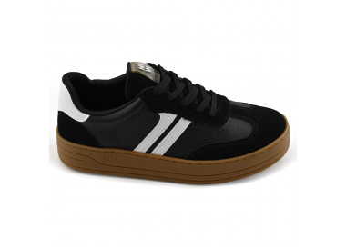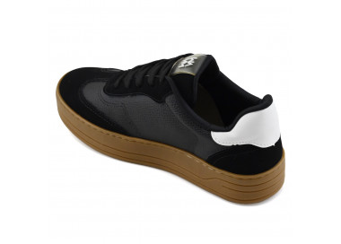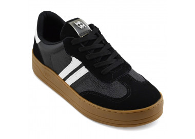 Zapatilla de mujer combinada en cuero y metalizado. Acceso con sistema de cordón y aplique de logo marca sobre lateral. Suela plataforma sintética.