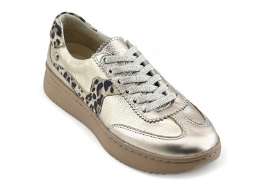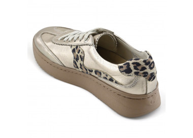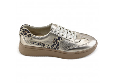 Zapatilla urbana de mujer en cuero y gamuza combinados.