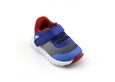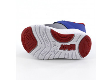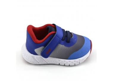 Zapatilla infantil de materiales sintéticos. Acceso con sistema de cordón y faja con abrojo.