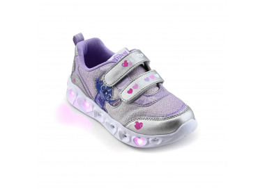 Zapatilla infantil de materiales sintéticos con detalles tornasolados.