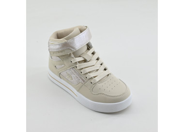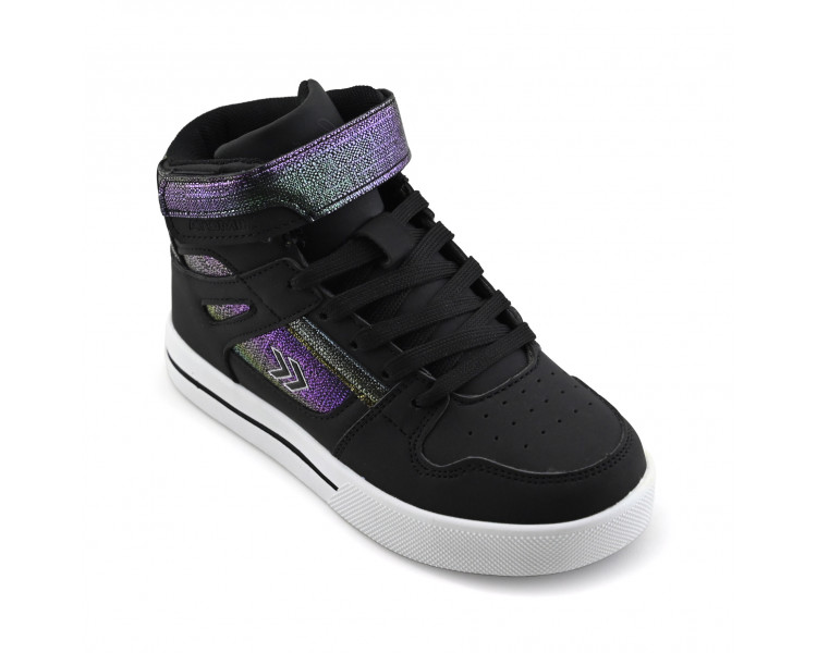 Zapatilla infantil de materiales sintéticos con detalles tornasolados.