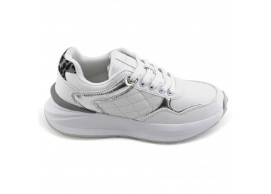 La Zapatilla Hush Puppies On color blanco confeccionada en cuero y descarne, con tres velcros que facilitan el ajuste y detalles de pequeñas perforaciones en el perfil que aportan frescura y estilo. La identificación de la marca se encuentra en la lengua y el talón. Incorpora una plantilla de material sintético con logo y una suela de goma antideslizante con una altura total de 4,2 cm que...