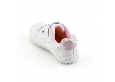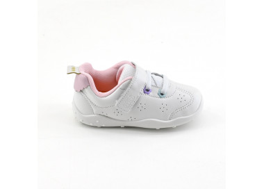 Zapatilla infantil para niños pequeños. Confeccionada en mesh y material sintético. Acceso y ajuste con cordones y abrojo. Base continuada en puntera para mayor refuerzo y cuidado.