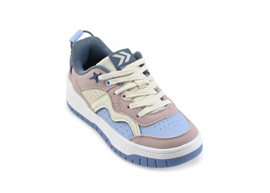 Zapatilla infantil de materiales sintéticos con detalles tornasolados.
