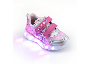 Zapatilla deportiva infantil. Capellada de mesh y material sintético. Acceso y ajuste con cordón y abrojo.