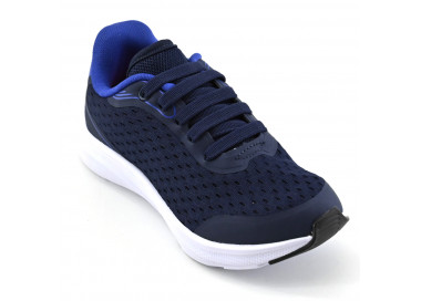 Zapatilla infantil para niños pequeños. Confeccionada en mesh y material sintético. Acceso y ajuste con cordones y abrojo. Base continuada en puntera para mayor refuerzo y cuidado.