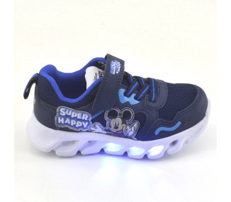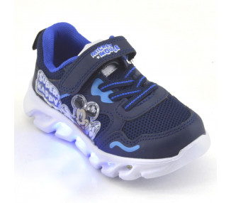 Zapatilla infantil con luces en lateral y base. Acceso con sistema de abrojos. Suela plataforma con luces que se encienden al pisar.