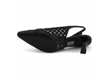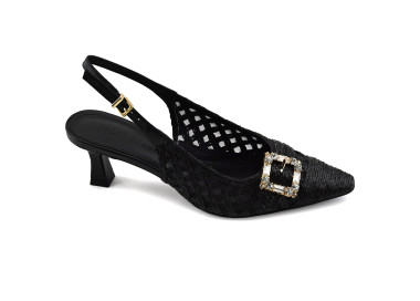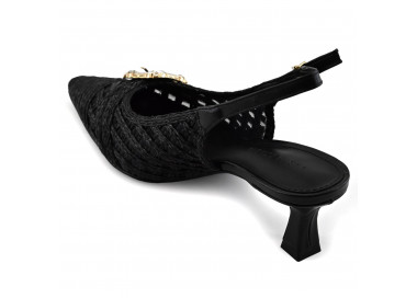 Zapato estilo chanel realizado en rafia trenzada.